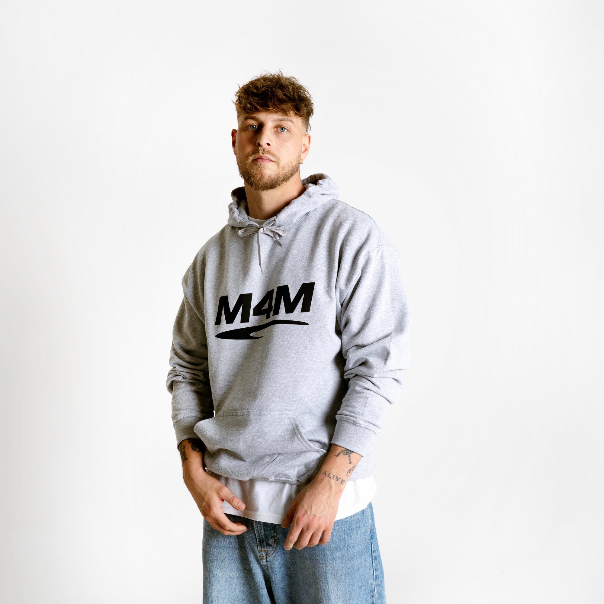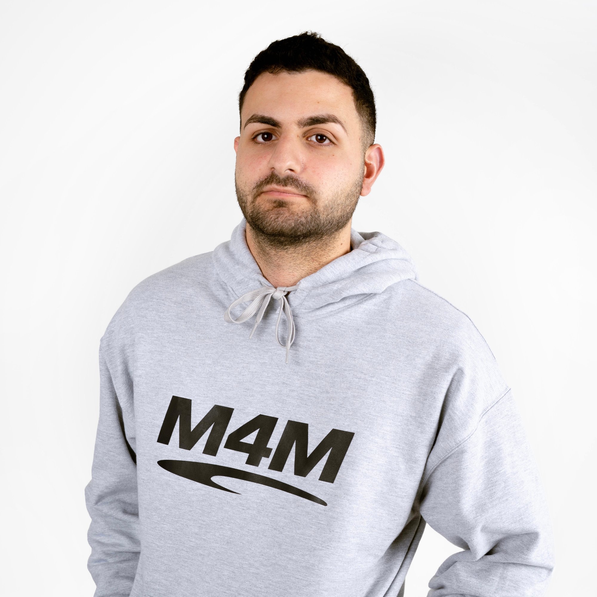A heavyweight Cool Grey Hoodie with M4M Print on the front and Jason Allan bold print on the back. Sharp, clean and tailored for anyone repping the movement.